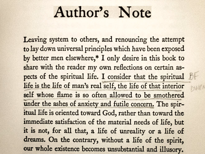 I consider that the spiritual life is the life of [one’s] real self, the life of that interior self whose flame is so often allowed to be smothered under the ashes of anxiety and futile concern.